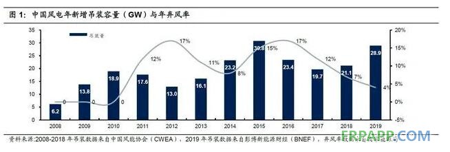 由上圖可知,我國已經經歷過了兩輪風電周期。第一輪風電周期的起點是2008年,當時風電標桿電價的確立,國內迎來第一輪風電搶裝潮,一時間出現了上百家風機制造商,并制造出上百種風電機型。這里就有昔日的明星企業華銳風電一路高歌猛進,依靠風電裝機儲備了大量的風資源。然而進入“十二五”時期,過度搶裝帶來的棄風率飆升,導致風電行業也開始從高增長迅速進入蕭條期,大量風電裝機企業慘遭洗牌,一直持續到2012年。