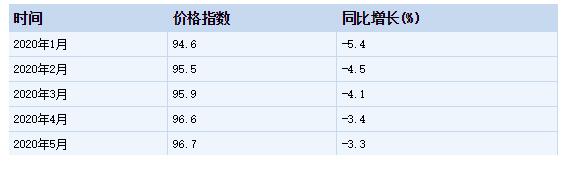 2020年1-5月玻璃纖維和玻璃纖維增強(qiáng)塑料制品制造工業(yè)生產(chǎn)者出廠(chǎng)價(jià)格指數(shù)