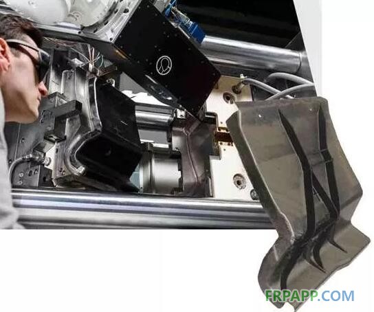 “該部件的承載情況要求在發生碰撞時具有良好的剛度和強度。”Schares解釋說,“我們還想要復雜的形狀和懸垂,以證明采用水平預浸料的模壓成型、激光燒蝕和沿自由表面的二次成型是合適的。”