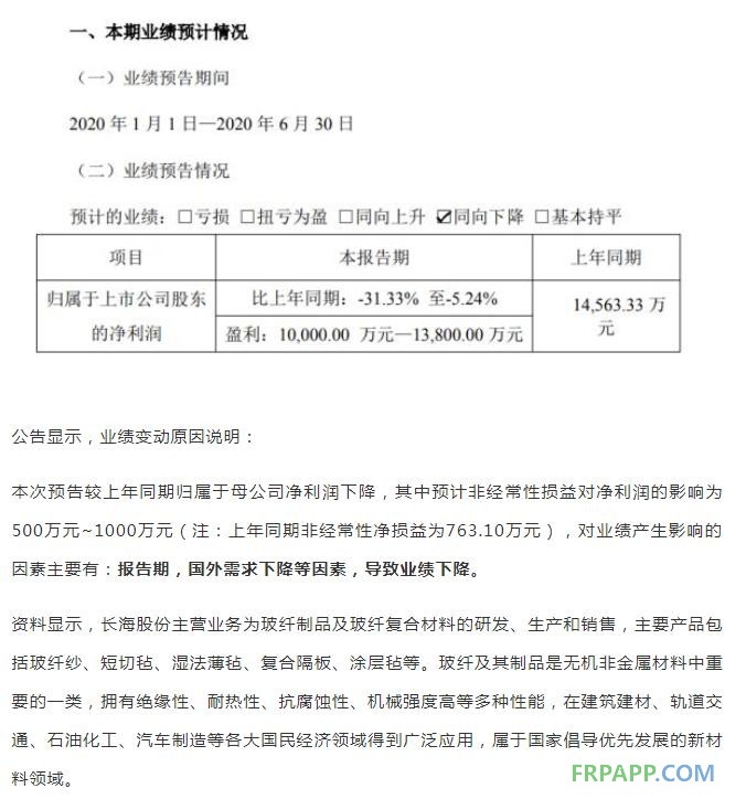 7月14日消息,長海股份(300196)發(fā)布2020年半年度業(yè)績預告:2020年上半年預計盈利1億元~1.38億元,上年同期盈利1.46億元,同比下降5.24%~31.33%。