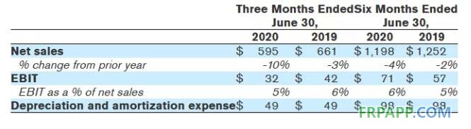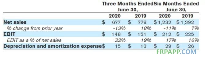 2020年上半年息稅前利潤為2.83億美元,去年同期為3.47億美元。第二季度調整后收益為9600萬美元,而一年前同期為1.41億美元。2020年上半年調整后收益為1.61億美元,而去年同期為1.99億美元。