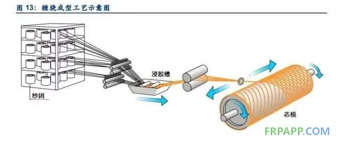 纏繞成型工藝常被用于制造壓力容器、釣竿、傳動軸等制品,在土木建筑領域也多有應用。其工藝流程包括將浸過樹脂膠液的連續纖維按一定規律纏繞到芯模上,然后經固化、脫模獲 得制品。用纏繞成型工藝制成的纖維能保持連續完整、制品強度高、可機械化連續性生產、 生產周期短。但該工藝生產設備復雜,需要雜繞機、芯模、固化加熱爐、脫模機等設備,存 在一定的技術難度,且不能纏任意結構形式的制品,產品形狀單一。