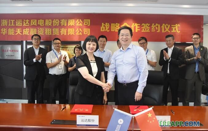8月4日,浙江運達風電股份有限公司與華能天成融資租賃有限公司在杭州舉行戰略合作協議簽約儀式。運達股份黨委書記、總經理高玲,華能天成總裁高波、總裁助理呂濤出席了簽約儀式。