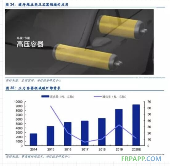 隨著燃料電池突破低成本,高壓氫氣瓶迎來(lái)強(qiáng)勁需求。此外,歐美興起的頁(yè)巖氣收集、運(yùn)輸、貯藏產(chǎn)業(yè)需要高壓氣瓶,由此推動(dòng)碳纖維壓力容器的需求。雖然目前碳纖維壓力容器的市場(chǎng)不大,但卻有著較大的增長(zhǎng)空間。