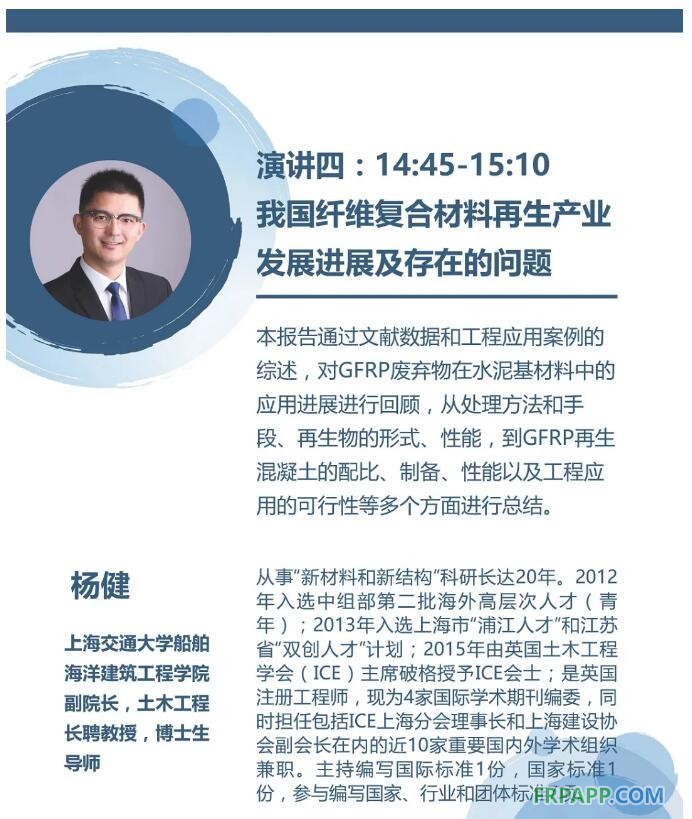 2020年9月2日- 4日在上海舉辦的“第26屆中國國際復合材料工業技術展覽會”期間, “中國物資再生協會纖維復合材料再生分會”聯合“中國復材展”組委會,將于同期舉辦第二屆“復合材料回收與利用”高層論壇。