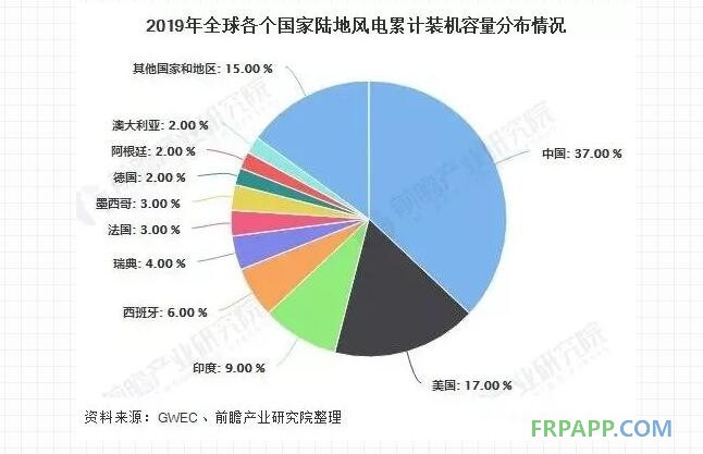 目前,全球已有90多個國家建設了風電項目,主要集中在亞洲、歐洲、美洲。從各國分布來了看,截至2019年底,中國、美國、印度、西班牙和瑞典為全球陸地風電累計裝機容量排名前五的國家,陸地風電累計裝機容量占全球陸地風電裝機容量的37%、17%、6%和4%,合計占比為73%。
