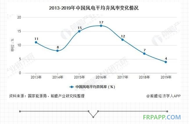 此后,在一系列針對可再生能源消納、特高壓輸電線路建設等政策推動下,棄風限電情況逐步好轉。根據國家能源局發布的《2019年風電并網運行情況》,2019年全國風電平均利用小時數為2,082小時,全年棄風電量169億千瓦時,同比減少108億千瓦時,平均棄風率4%,同比下降3個百分點,棄風限電狀況進一步得到緩解。