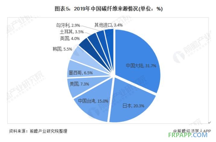 ——碳纖維供應(yīng)結(jié)構(gòu):2019年進(jìn)口碳纖維比重高達(dá)68.3%,主要進(jìn)口地區(qū)為日本和中國臺(tái)灣