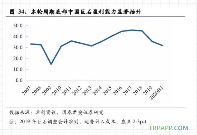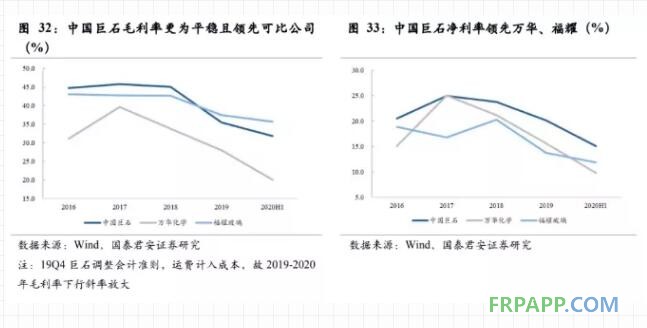 3.中國巨石盈利能力領先可比周期制造核心資產,2020年第三季度始玻纖企業盈利有望逐季抬升