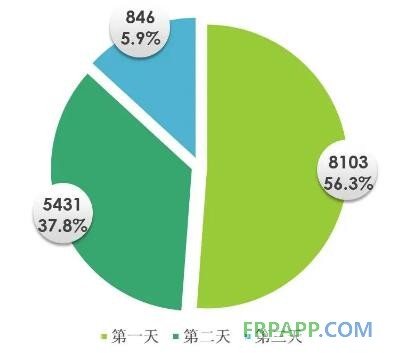 本屆展會的專業觀眾共計14380人,來自30個國家和地區,其中,境內觀眾14104人,境外觀眾276人。三天展期內,參觀總人次達52301人次。對比每日進場參觀數據,展會首日參觀登記人數為8103人,入場總人次為21779;第二日新增參觀登記人數為5431人,入場總人次為22730人次;第三日新增參觀登記人數846人,入場總人次為7792人次。