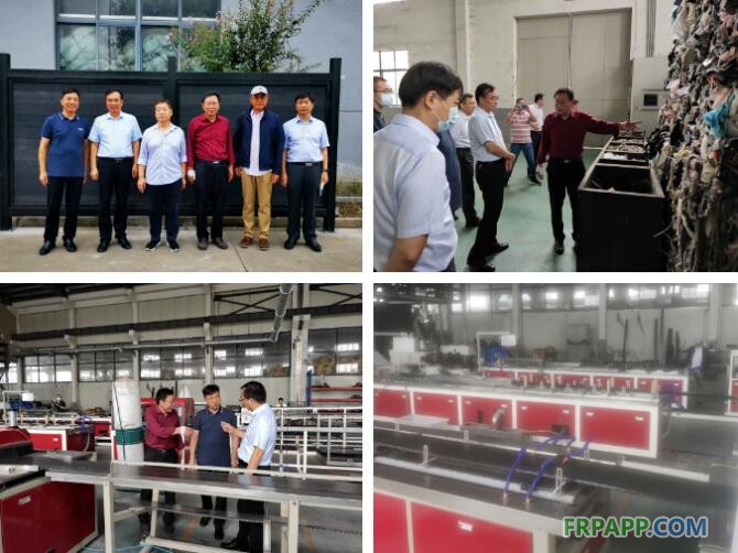 河南省魯山縣縣長李會良、平煤神馬集團董事會專家王穎洲、神馬氯堿公司董事長黃金豹、長春應化所研究員李濱耀等領導和驗收委員會專家一行,在華昌聚合物公司副總經理江邦和、工程塑料事業部經理吳馳飛教授等陪同下,詳細考察基于廢紡織品資源化利用的纖塑復材試驗線和整個生產過程。