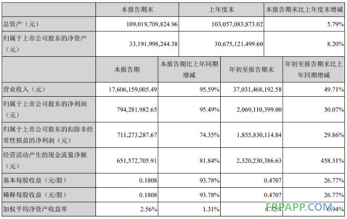金風科技(002202)10月28日晚間公布三季報,2020年前三季度,公司實現營業收入370.31億元,同比增長49.71% ;實現凈利潤20.69億元,同比增長30.07%。其中,公司第三季度營業收入達176.1億元,凈利潤7.94億元,同比增幅分別達到95%以上。