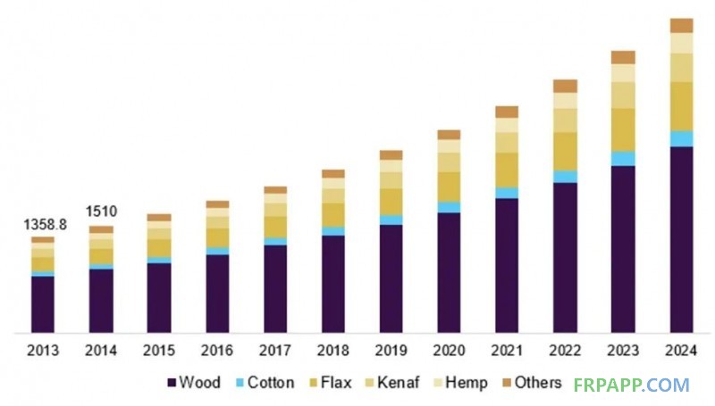 2016年,全球天然纖維復(fù)合材料的市場價值是40.46億美元,從2016年到2024年,有可能實現(xiàn)11.8%的年均復(fù)合增長率。