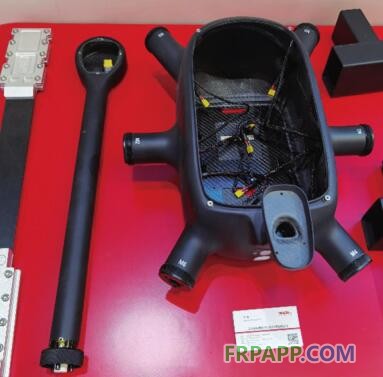 中科院寧波材料所在展會上對其無人機碳纖維復合材料中央翼主梁進行了展示。該無人機中央翼主梁主要材料為碳纖維和環氧樹脂,采用單向預浸帶連續纏繞工藝,可實現最大直徑Φ300mm、長15m的大長徑比圓管產品的制造。