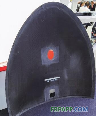 上海玻璃鋼研究院對其自主研發的氮化硅增程減阻頭罩和多孔氮氧化物夾層結構天線罩進行了展示。