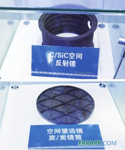 在此次展會上,西安航天復材研究所展出了C/SiC空間反射鏡和空間望遠鏡炭/炭鏡筒。