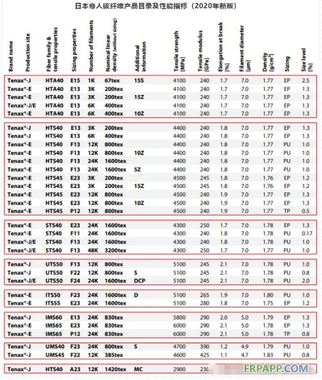 2020年2月,日本帝人公司發布了公司Tenax®碳纖維的最新版產品目錄和性能指標,在高模量碳纖維領域,公司碳纖維產品最高模量僅為425GPa,不再提供UMS 55(模量540GPa,與東麗M55J相同),標志著日本東麗公司成為全球唯一一家提供高模量540GPa以上PAN基商品化產品的企業。