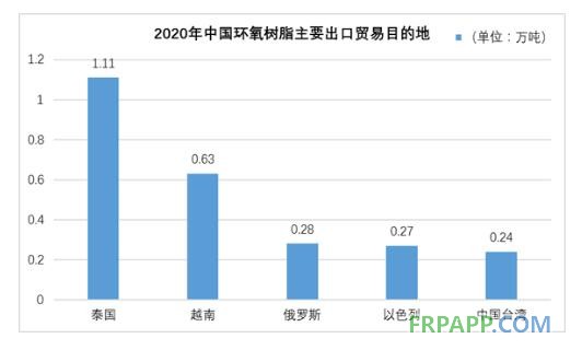 2020年,中國環(huán)氧樹脂主要出口目的地是泰國和越南,向這兩個國家合計出口環(huán)氧樹脂1.74萬噸,占總出口量的37%以上。環(huán)氧樹脂主要出口貿(mào)易目的地見下圖:
