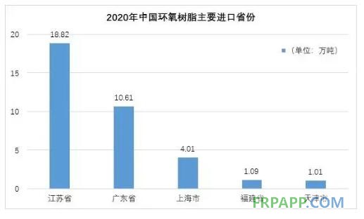 2020年,中國環(huán)氧樹脂主要經(jīng)江蘇、廣東和上海等沿海省市進口,三省環(huán)氧樹脂合計進口量33.44萬噸,占全國總進口量的83%以上。環(huán)氧樹脂主要進口省份見下圖: