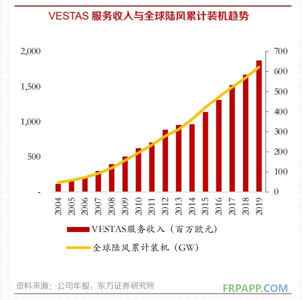 海外風電巨頭服務利潤貢獻大,運維商業模式成熟穩定。維斯塔斯服務板塊 2019 年收入占比 15%,而息稅&特殊項目前利潤占比 48%,息稅&特殊項目前利潤率由 2016 年的 17%提升至 2019 年的 26%,主要是 1)或受益機組的高可靠性,保持較低的運維成本;2)對服務的長期預期確保服務利潤。海外運維商業模式呈現穩定特點:對比維斯塔斯服務收入與全球陸風累計裝機增速,服務增速一般略高于累計裝機增速,說明海外運維商業模式長期比較穩定,主要體現在龍頭運維份額的保持和運維單價的穩定。