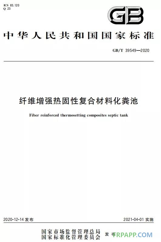 核心提示:GB/T 39549-2020《纖維增強熱固性復合材料化糞池》國家標準于2021年4月1日正式實施。該標準由國標委下達任務,屬農村人居環(huán)境配