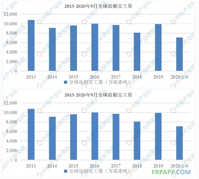 作為國際間貿(mào)易交換的重要運(yùn)載媒介,船舶在全球貿(mào)易中起著舉足輕重的作用,為全球貿(mào)易的正常進(jìn)行提供運(yùn)載媒介的保證,因此船舶制造產(chǎn)業(yè)景氣程度與國際貿(mào)易和全球海運(yùn)市場(chǎng)發(fā)展高度相關(guān)。根據(jù)中國船舶行業(yè)協(xié)會(huì)統(tǒng)計(jì),2020年1月~9月全球造船完工量有所下滑,但下滑幅度較小,較去年同期下降7.84%。全球造船完工量的相對(duì)穩(wěn)定為全球造船企業(yè)及相關(guān)配套企業(yè)提供了相對(duì)穩(wěn)定的終端需求。