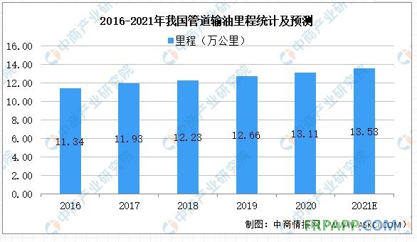 玻璃鋼管道屬于新型復(fù)合材料,能夠滿足石油輸送的嚴(yán)苛要求,受益于油氣管網(wǎng)建設(shè)的穩(wěn)步推進(jìn),未來面臨較好的市場(chǎng)機(jī)遇。數(shù)據(jù)顯示,2016年~2019年,我國油氣管網(wǎng)總里程逐年增加,年新增里程數(shù)呈現(xiàn)一定變動(dòng)。據(jù)預(yù)測(cè),2021年我國管道輸油里程可達(dá)13.53萬km。