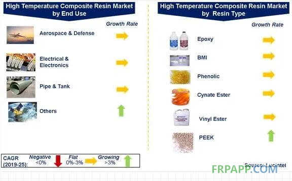 在預測期內,高溫樹脂體系也會面臨一定的挑戰,目前對其主要挑戰的新興趨勢在于兩種因素,其一是包括具有低揮發性有機化合物(VOC)樹脂體系的開發,其二是熱塑性樹脂材料越來越受到廣泛關注。