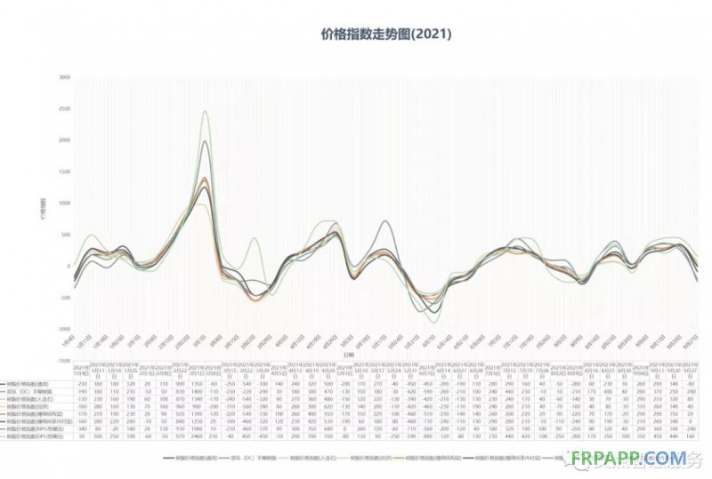 鄰苯通用型樹脂-80,雙環(DC)手糊樹脂-200,人造石/石英石樹脂80,拉擠樹脂40,纏繞結構層樹脂20,纏繞間苯內襯樹脂0,NPG型模壓樹脂-240,DPG型模壓樹脂160。“雙控”影響,市場雙向波動,樹脂售價保持穩定。