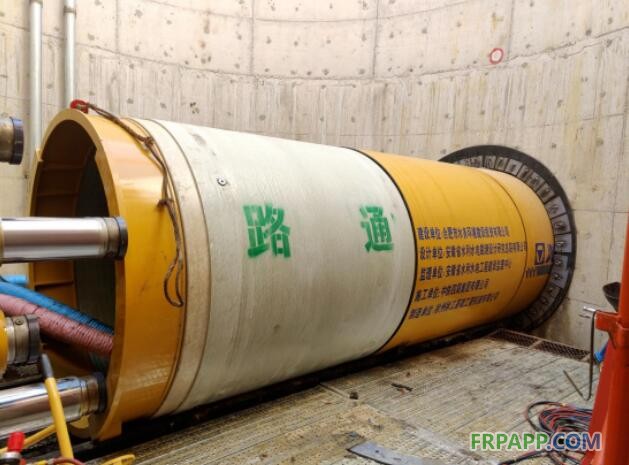 據項目的設計單位安徽省水利水電勘測設計研究總院設計代表張江紅介紹:“本次施工的6號井~5號井長度為1187.5米,管道直徑2.4米,覆土埋深10.2米-11米,穿越土層為弱膨脹粉質黏土層,0.3%的坡度。施工難點主要在于施工距離超長、管節摩阻力大及施工工期緊。”為此,項目管材選用福建路通管業科技股份有限公司生產的新型連續纏繞玻璃鋼夾砂頂管。這種管材的外壁光滑憎水,可以有效降低管節與土壤的摩阻力;管材重量輕,使管道糾偏更簡便,保證了管線0.3%的坡度;管材抗壓強度高,確保了超長距離頂管施工的順利進行。這也是這種新型管材首次在國內大口徑超長距離頂管工程中應用。“與通常鋼筋混凝土材質的管節不同,本次施工采用路通連續纏繞玻璃夾砂頂管,相同口徑管材重量僅為水泥管的1/10,但管壁結構堅實緊密,密封性和抗震性好,且耐蝕、安裝方便。”張江紅補充說。
