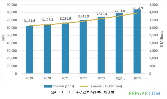 圖4 2019-2025年小絲束碳纖維市場(chǎng)規(guī)模