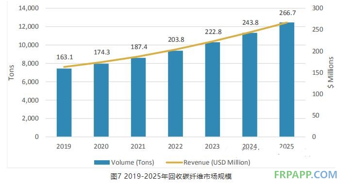 圖7 2019-2025年回收碳纖維市場(chǎng)規(guī)模