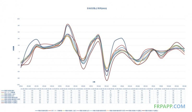 上周原材料市場在國際油價尤其是純苯價格強力上漲的推動下走出一小波滯脹行情。總體上看,目前化工品價格的波動還主要是成本推動的結果,下游市場普遍仍未大規模啟動。本周開始,上海宣告從疫情防控全面轉向恢復生產振興經濟,北京宣布社會層面的新增病例清零,因此,從本周開始,全國進入經濟振興的大反攻階段。上周國務院召開了史無前例的10萬人動員大會,落實最新出臺的經濟恢復計劃,由此中國經濟重新進入了強刺激周期。我們預期,從6月份開始,隨著刺激經濟的各項政策逐步落實,市場需求也將明顯恢復,但是由于UPR產業鏈上各個環節新增產能過多,短期內供給過剩的局面仍將制約價格的快速增長,市場將會出現一個緩慢但是持續漲價的過程。市場高峰將有可能在三季度末四季度初出現。