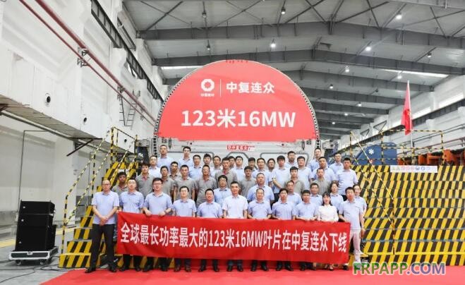 8月30日,全球最長123米風(fēng)電葉片在中復(fù)連眾成功下線!這是中復(fù)連眾在不到一年時間內(nèi)下線的第四款長度超過百米的葉片!