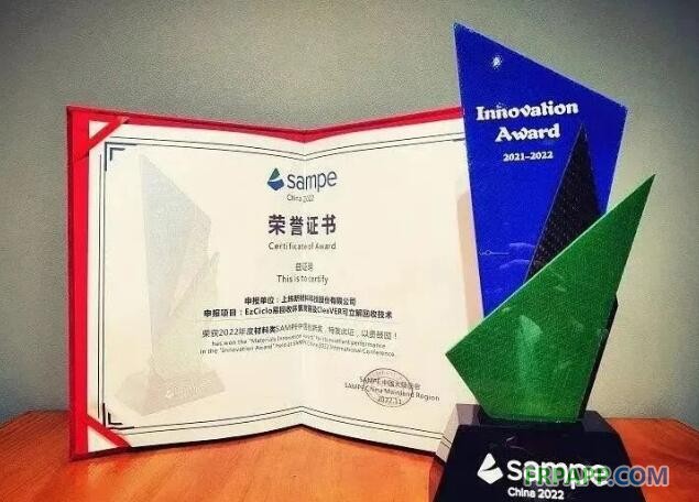 本次上緯新材“EzCiclo易可收環氧樹脂及CleaVER可立解 回收技術”項目榮獲 “2022年度材料類SAMPE中國創新獎”, 展示了我司在復合材料領域的創新能力和制造實力。