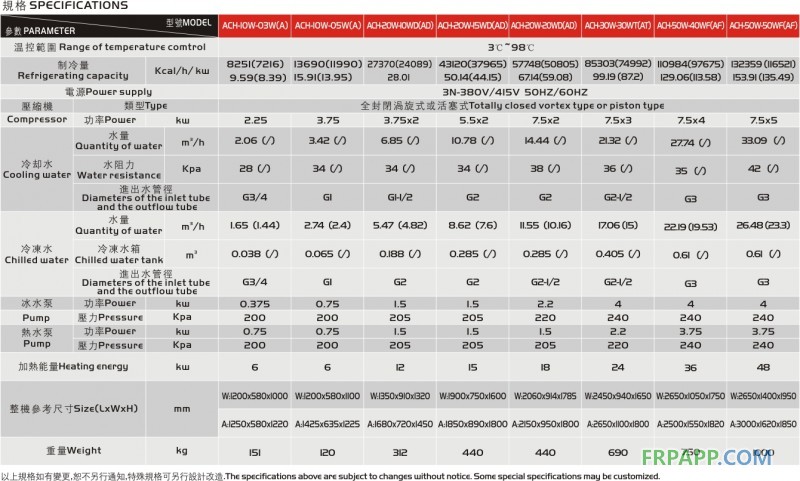 ◆ 電器采用SIEMENS.Weidmuller. LG ◆ 控制方式: 采用進(jìn)口微電腦或PLC控制(選購) ◆ 安全保護(hù)完善,故障顯示, 維修.保養(yǎng)無需專業(yè)人員 ◆ 高效率之蒸發(fā)器及冷凝器,可節(jié)省能源30%以上 ◆ C-20以上采用兩組壓縮機(jī)頭.可單獨(dú)或共同使用 ◆ 溫度控制范圍: 進(jìn)水溫+5℃→98℃ |