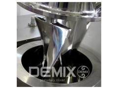 DEMIX立式捏合機是帶有兩個螺旋形刀片的重型捏合裝置。刀片垂直安裝并懸于釜體頂部的傳動部件上,只有刀片部分與物料接觸。設(shè)備運行時,其中一套刀片繞另一套刀片作行星式旋轉(zhuǎn)運動,兩套刀片不斷貼合和剝離,物料在釜內(nèi)空間受強制性的剪切、揉捏、折疊等作用被反復(fù)剪切、擠壓、拉伸成薄片。