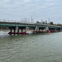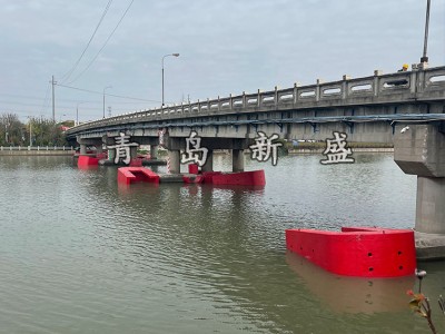 自浮式復(fù)合材料橋梁防撞設(shè)施,是安裝在橋梁橋墩四周,隨著江面(河道、海面)水位的高低依靠自身的浮力沿著橋墩軸線上下升降,始終處于船舶撞擊高度的防撞設(shè)施。根據(jù)設(shè)防橋梁或承臺規(guī)格,當(dāng)水位相差較多,且橋墩或承臺垂直方向尺寸相同或變化不大,可使用自浮式橋梁防撞設(shè)施,使其隨水位漲落而漂浮在水面始終處于迎撞面,保護橋梁或承臺不直接遭受船舶撞擊。自浮式復(fù)合材料橋梁防撞設(shè)施是由復(fù)合材料外殼、內(nèi)部消能格構(gòu)腹板、內(nèi)填耗能閉孔吸能材料及組件連接機構(gòu)、內(nèi)側(cè)阻尼元件組成。