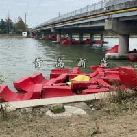 自浮式復合材料橋梁防撞設施,是安裝在橋梁橋墩四周,隨著江面(河道、海面)水位的高低依靠自身的浮力沿著橋墩軸線上下升降,始終處于船舶撞擊高度的防撞設施。根據設防橋梁或承臺規格,當水位相差較多,且橋墩或承臺垂直方向尺寸相同或變化不大,可使用自浮式橋梁防撞設施,使其隨水位漲落而漂浮在水面始終處于迎撞面,保護橋梁或承臺不直接遭受船舶撞擊。自浮式復合材料橋梁防撞設施是由復合材料外殼、內部消能格構腹板、內填耗能閉孔吸能材料及組件連接機構、內側阻尼元件組成。