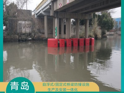 3)防撞設施安裝 節段組裝成兩個 U 形段后,即可運至墩身處進行安裝。每個 U 形段分別各用一 艘拖輪拖動,緩緩靠近墩身,在拖輪拖動的同時需保證防撞設施的平衡性,靠近后改用拖輪頂推移動的方法,將兩個U形段圍繞橋墩固定,調節整體平衡,將之實現鎖口對接,拼接成完整封閉的浮式防撞設施。