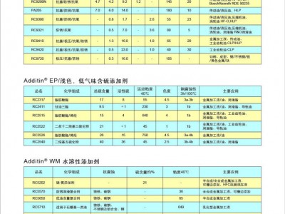 Additin RC 9200 N是低鋅的液壓油復合添加劑,在0.6%(w)加劑量時,具有優異的抗氧、防腐