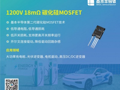 針對新能源汽車的應用需求,BASiC™基本公司研發推出符合AEC-Q101認證和PPAP要求的1200V 80mΩ和40mΩ 的碳化硅MOSFET,可主要應用在車載充電機及汽車空調壓縮機驅動中。