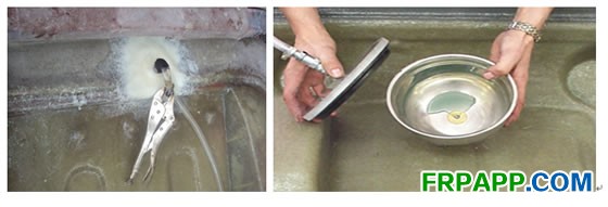 3.調節注射設備樹脂與固化劑比例(一般100:1.5--2),把設備出料口和模具進料口連接好,開始注膠,在此過程中注意樹脂注射設備的穩定性,樹脂壓力一般1公斤。
