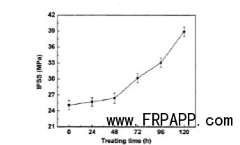 實(shí)驗(yàn)中選用PAN基碳纖維和雙酚A型環(huán)氧樹脂作為復(fù)合材料的增強(qiáng)體和樹脂基體,采用氨水處理方法對碳纖維表面進(jìn)行改性。考察在24h、48h、72h、96h、120h不同處理時間下,對碳纖維增強(qiáng)環(huán)氧樹脂復(fù)合材料的界面粘結(jié)性能的影響進(jìn)行了研究。