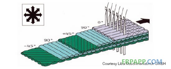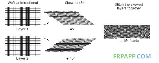 通過編織&縫合方式可以制成+/-45度織物。再加上0/90織物就可以構(gòu)成四向織物。如圖所示: