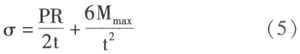當P=4.5MPa時,σ1=40.7MPa,由此可見,連接處的最大應力比無矩理論的大28%左右。