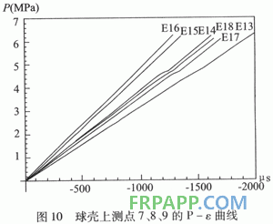 從圖6~11的P-ε曲線可見,靜水壓力加到6.OMPa,天線罩的P-ε曲線是線性的。