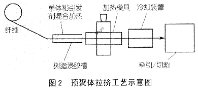 這種拉擠工藝實(shí)際與R IM 工藝類似。不同的是,在線制備的樹脂直接注入拉擠模具。