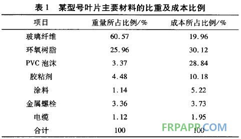 從表1可以看出,玻璃纖維、環氧樹脂、PVC泡沫和膠粘劑占主體材料重量的94.38%,成本的89.1%。因此,四大主體材料的質量、價格都是決定風機葉片未來的走向。