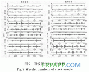 裂紋損傷的診斷應(yīng)從幅值入手,當(dāng)系統(tǒng)的振幅呈規(guī)則下降且基頻有上升趨勢時,可以初步判斷有微裂紋形成。再依次檢查相位是否有負(fù)方向的移動,有無新的高頻分量出現(xiàn)及幅頻曲線是否出現(xiàn)有毛刺等因素,用以增加裂紋損傷的置信度。必要時可以同時利用頻域分析的結(jié)果和小波分析的結(jié)果,用來準(zhǔn)確確定有無裂紋損傷以及損傷的置信度。